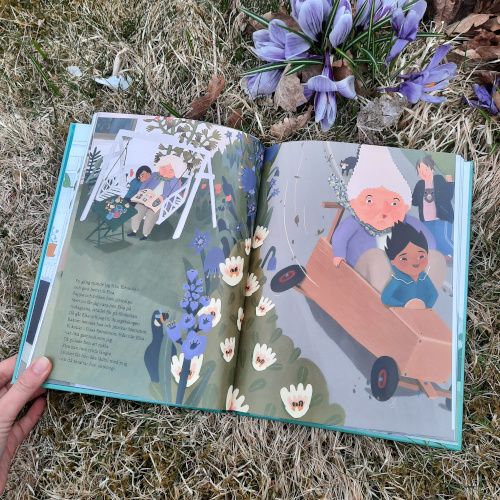 Bilderna är vackert illustrerade i varma och somriga färger, med många små detaljer på varje sida.