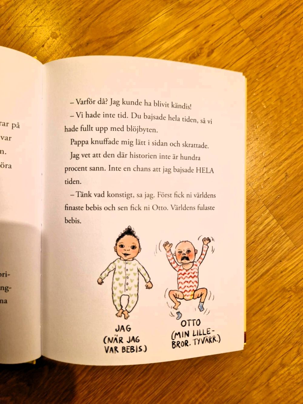 Boken är utmärkt för högläsning men passar även bra att läsa själv med korta kapitel och enkla meningar. Som många moderna barnböcker innehåller den en del svordomar men de känns ok och rimliga i sammanhanget. Lindell har även illustrerat boken och hennes stil är härlig och särskilt skrattar jag åt hur ful lillebror är. Bebisföräldrar håller alltid sina avkommor högt men jag håller med Uno om att alla inte är det. Oavsett om Jenka och jag vinner Augustpris eller inte så tycker jag att ni ska läsa den!